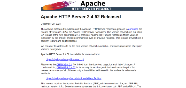 Apache HTTP Server vulnerability countermeasure upgraded to v2.4.52